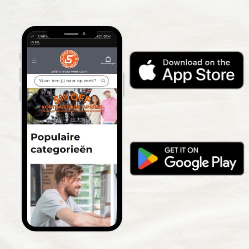 Uw favoriete werkkleding bestellen terwijl u op de bouwplaats staat? Geen probleem. Met de nieuwe Unishore Workwear App heeft u ons volledige assortiment en uw eigen KMS altijd binnen handbereik. Het is sneller, makkelijker en speciaal gebouwd voor vakmensen die liever aan de slag gaan dan achter een laptop zitten. Ontdek alle functies in ons blog over de Unishore Workwear App voor Android en Apple. Download hem direct voor Android of voor iOS