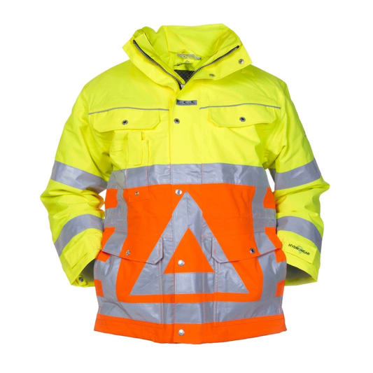 Het grootste verschil tussen een RWS-vest en de veiligheidsvesten die u op deze pagina vindt zit in de grotere hoeveelheid reflecterend materiaal die gebruikt is. Naast de strepen die het licht van voorbijrijdend verkeer zullen weerkaatsen vindt u op een verkeersregelaarsvest namelijk ook een grote, 5 centimeter brede driehoek. Ook deze zal licht reflecteren. Deze driehoek mag niet door een rits of andere sluiting onderbroken worden. Dat betekent overigens niet dat alle hesjes die u hier vindt overgooiers zijn. Onze verkeersregelaarsparka’s hebben weliswaar een ritssluiting, maar deze is wel zo in dit type werkjas verwerkt, dat de driehoek ononderbroken doorloopt. Ook wordt in dit type High Vis bedrijfskleding zowel fluorescerend oranje als fluorescerend geel gebruikt in plaats van slechts een van de twee kleuren.