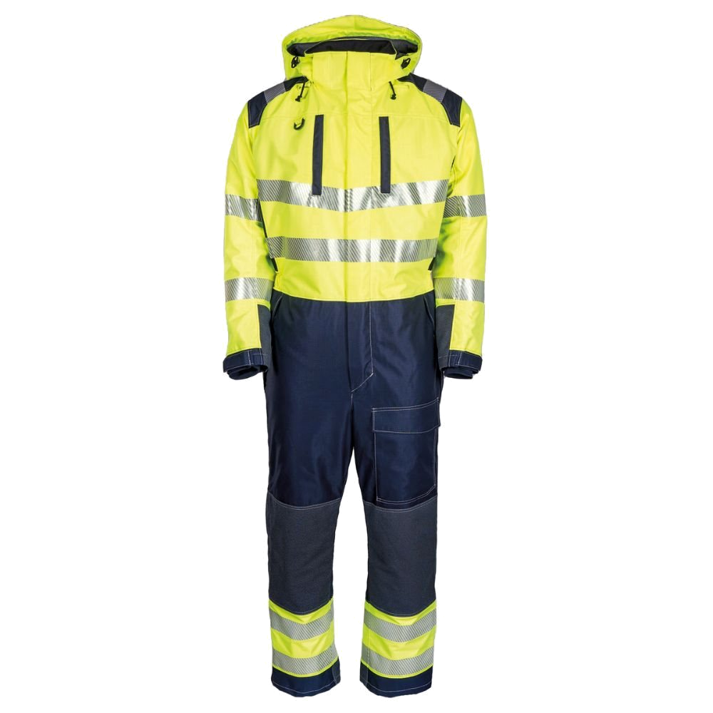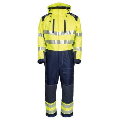 Dieser inhärent flammhemmende Hi-Vis-Winteroverall von Tranemo ist ergonomisch geformt für eine gute Passform und lässt sich leicht mit erhobenen Armen arbeiten. Der Overall hat ein wattiertes innenfutter und ist wind- und durch die verschweißten Nähte auch wasserdicht.