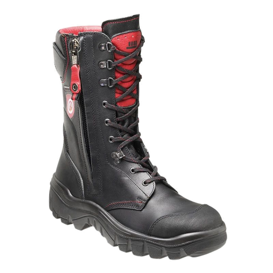 In fact, fire boots are lace-up boots with a zipper that meet additional safety requirements. This combination of closures allows you to simultaneously benefit from the security of laces and the convenience of a zipper. For example, if your safety boots need to be taken off immediately, you can step out of them after opening the side zipper. But ordinary lace-up boots with a zipper, which are usually rated S3 according to EN 20345, do not provide sufficient protection when exposed to high temperatures and flames. Firefighter boots are made of materials such as waterproof cowhide, which not only keep your feet dry, but are also adequately protected against the dangers of your work.