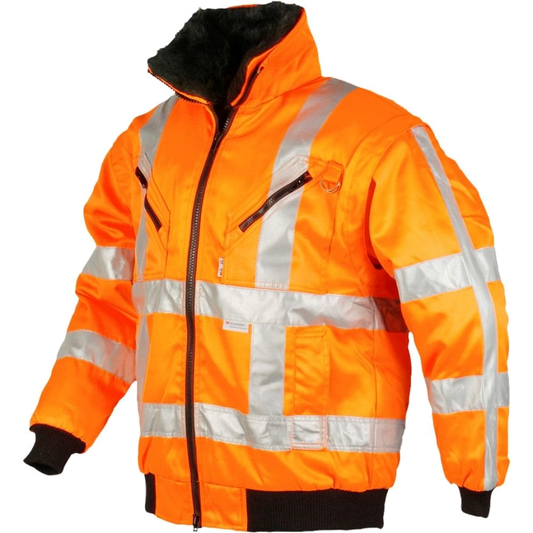 Pilot jackets , also called bomber jackets, are work jackets with an elastic border at the bottom of the jacket and at the ends of the sleeves. Because this collar is elastic, it fits very closely to your underwear, so that cold and dirt from outside do not have a chance to penetrate under the jacket. Many pilot jackets are equipped with a removable collar and inner lining, so this type of work jacket can be used in both winter and summer to provide some extra warmth at work.