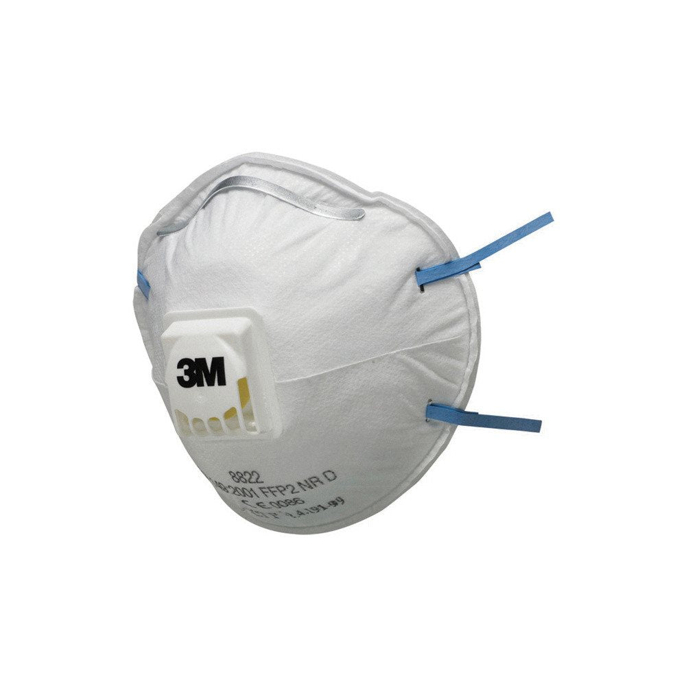 The 8822 Dust Masks are simple dust masks with an exhalation valve. It complies with standard EN149. The mask has a cup-shaped model. The convex shape, double head straps, nose pad and aluminum nose wire guarantee a good seal for most face shapes. Together with the 3M Cool Flow exhalation valve, it is a comfortable mask in warm, humid environments. Can be used against dust particles up to 10x the limit value.