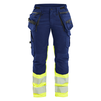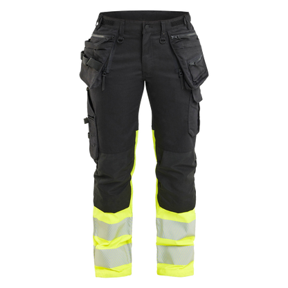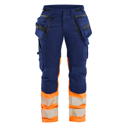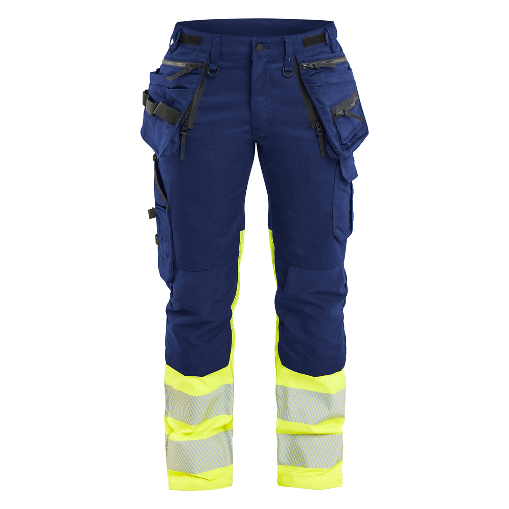 Deze duurzame High Vis werkbroek voor dames combineert 2-weg stretch met sterk CORDURA® denim en een slanke pijpsnit. Ideaal voor werk waarbij bewegingsvrijheid en functionaliteit voorop staan. Stretchpanelen in kruis en kuiten zorgen voor extra comfort, terwijl de kniezakken – verstevigd met CORDURA® stretch – van bovenaf toegankelijk zijn en extra stretch boven de knie bieden voor een ergonomische pasvorm.