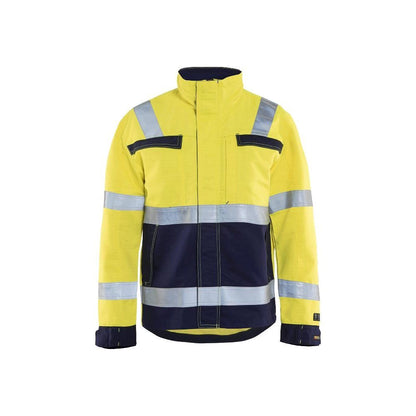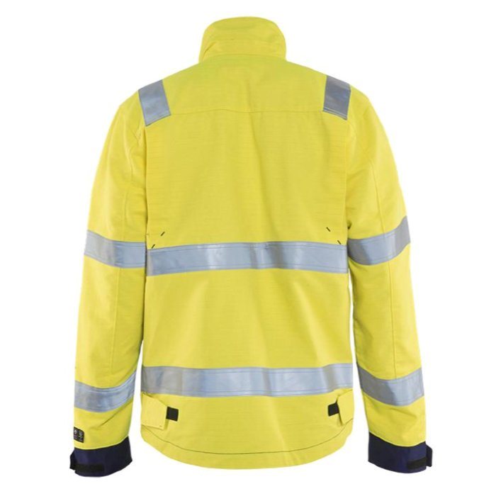 Dit Blaklader Multinorm jack. Ongevoerd 4087-1514 is gemaakt van duurzaam materiaal, ontworpen om goed zichtbaar te zijn vanuit alle richtingen. De jas heeft een kortere voorzijde voor maximale bewegingsvrijheid en een verlengd achterpand voor een betere bescherming van de rug. Het kledingstuk heeft borstzakken aan beide kanten en is voorzien van slimme details, zoals een binnenzak met telefoonzak en donkere kleuren op de plek die het meest wordt blootgesteld aan vuil.