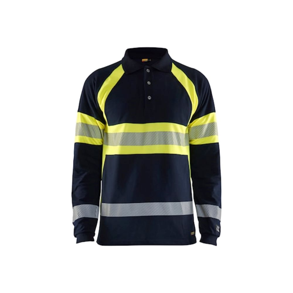 Met deze Blaklader Multinorm polo pique lange mouw 3438-1741 kunt u erop vertrouwen dat u zowel veiligheid als zichtbaarheid op de werkplek hebt. Dit comfortabel vlamvertragend High Vis poloshirt heeft lange mouwen vlamvertragende reflecterende tape, ribgebreide kraag en versterkte nek- en schoudernaden.