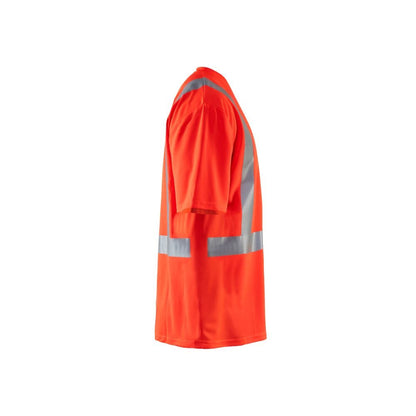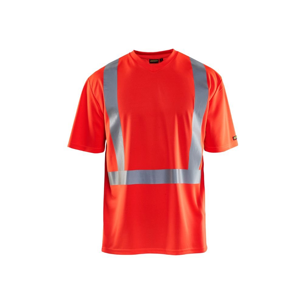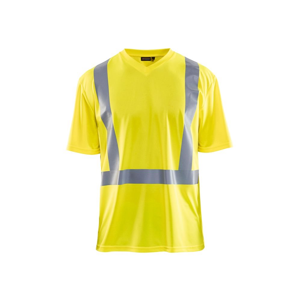 UV T-shirt met korte mouwen en V-hals van materiaal met antibacteriële werking. De zachte transferreflectie volgt iedere beweging. Gecertificeerd volgens EN 471 / ISO 20471 klasse 2. Het kledingstuk beschermt tegen UV-stralen en heeft een SPF van 40+. Het T-shirt is gecertificeerd voor zowel High-Vis en als UV.