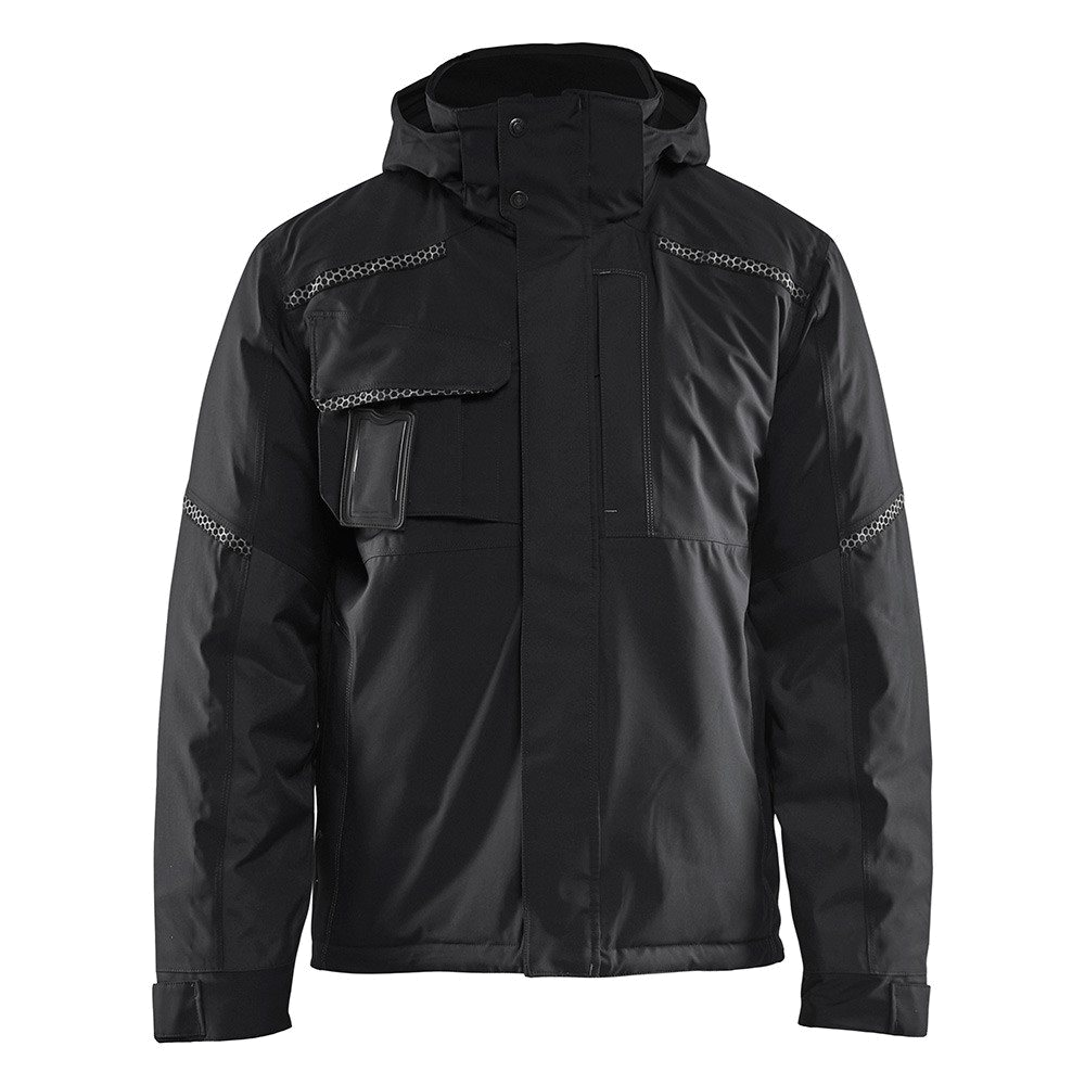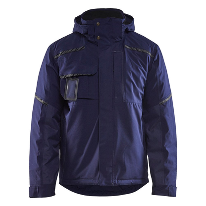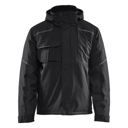 Zeer functionele wind- en waterdicht winter jas met getapete naden, fleece gevoerde kraag en verstelbare en afneembare capuchon. De jas heeft meshpanelen op de grotere zweet zones om vocht van het lichaam te transporteren. De jas is voorzien van een aantal functionele zakken, zoals borstzak voor pennen en mobiele telefoon, binnenzak en fleecegevoerde steekzakken. Discrete reflecterende details op voorkant, achterkant en op de mouwen. De mouwen zijn verstelbaar met klittenband en windvangers zijn voorzien van duimgaten. Perfect om te dragen tijdens de koude winterdagen. Gecertificeerd volgens EN 342 - beschermende kleding tegen koude weersomstandigheden in combinatie met winterwerkbroek 1810, en EN 343 - beschermende kleding tegen slecht weer.