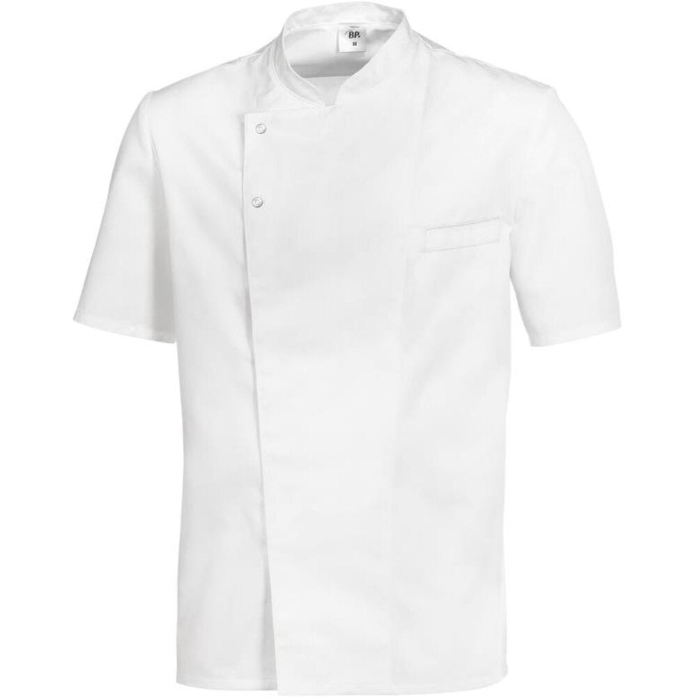 De BP® koksbuis met 1/2 mouw is ideaal voor wie comfort en bewegingsvrijheid wil in de keuken. De opstaande kraag geeft een verzorgde uitstraling, terwijl de blinde drukknopenlijst met twee zichtbare knopen zorgt voor een nette en professionele afwerking. Eén paspelzak op borsthoogte biedt praktische opbergruimte voor pennen of kleine keukenaccessoires.