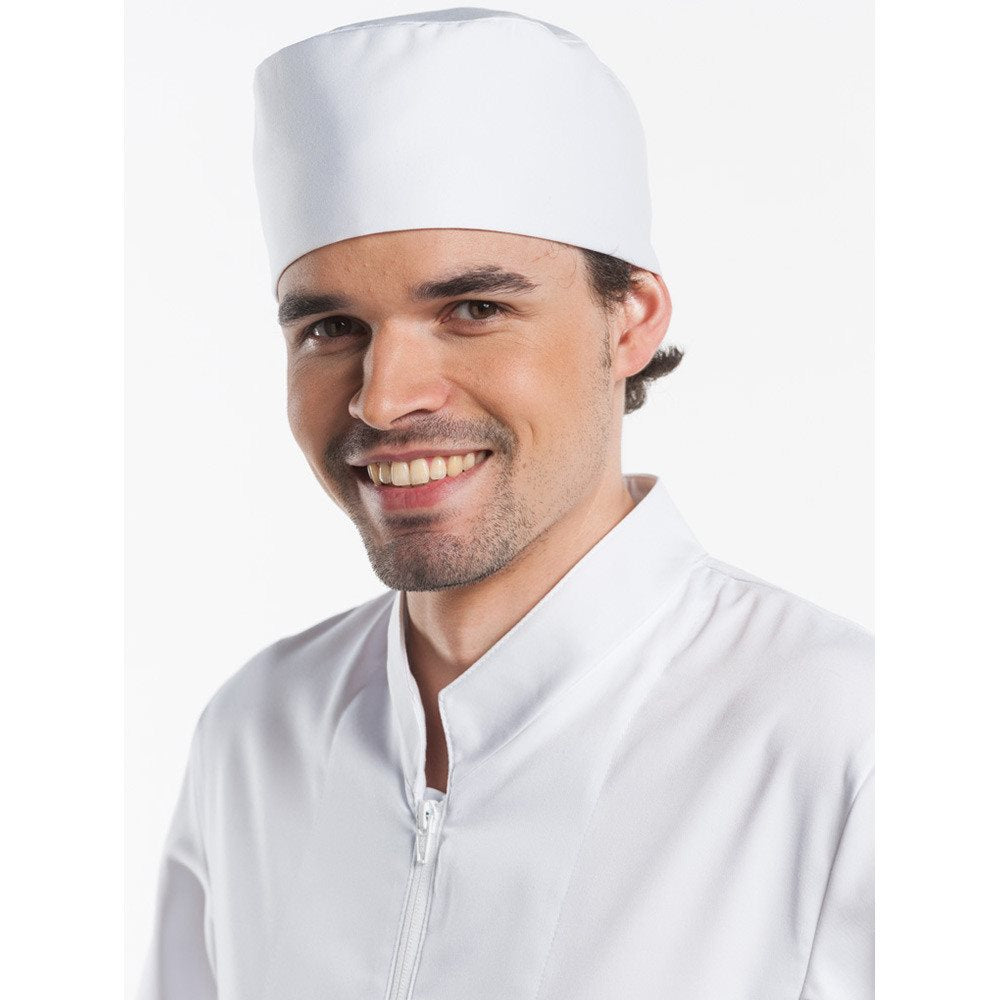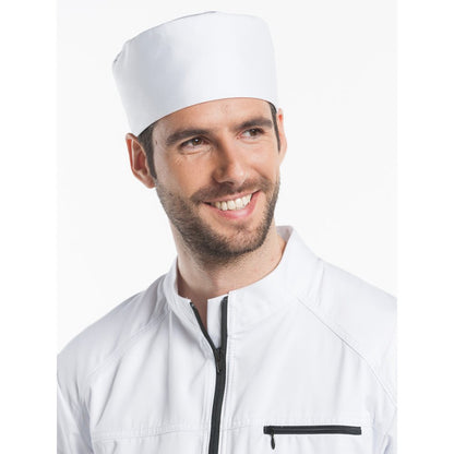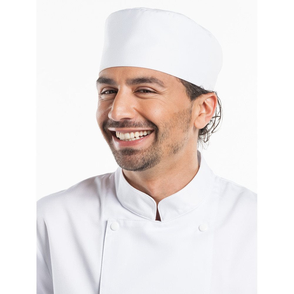 301 Koksmuts Bandi White.�De Bandi is de meest bescheiden koksmuts in het assortiment van Chaud Devant. Deze koksmuts heeft een strak gestileerd model met elastiek. De Bandi White is gemaakt van Cooltex materiaal met warmte- en vochtregulerende eigenschappen. De perfecte koksmuts om uw hoofd koel te houden.