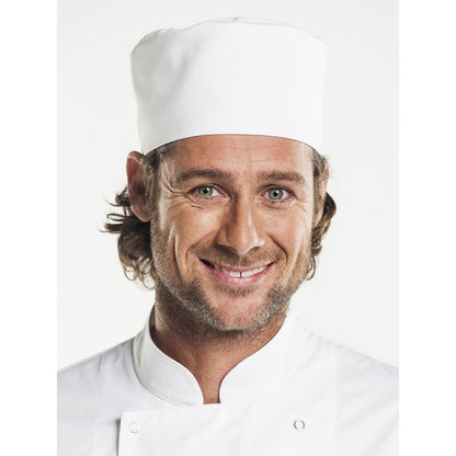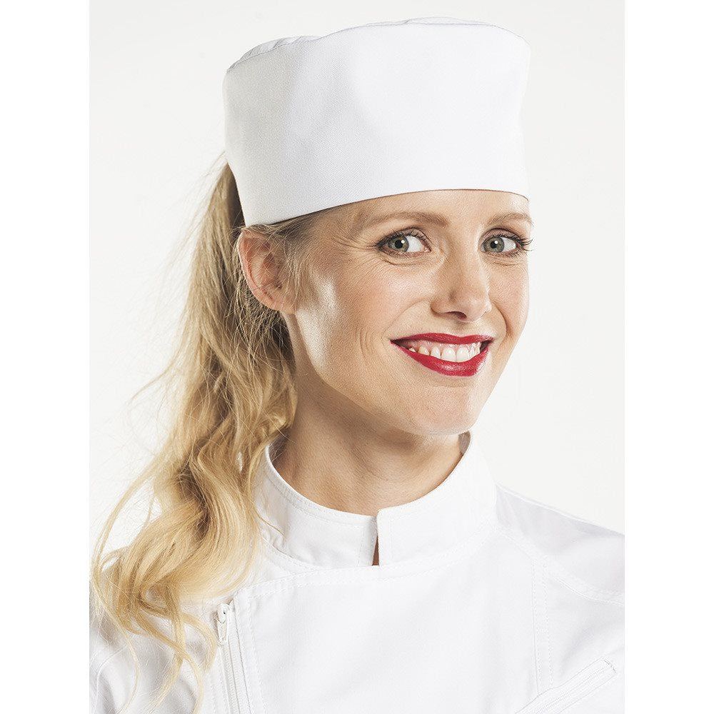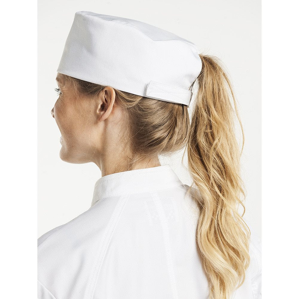 36299 Chaud Devant Koksmuts Bandi XO White. De Bandi is de meest bescheiden koksmuts van Chaud Devant in ons assortiment, een strak en gestileerd model die dankzij de klittenbandsluiting 'one size fits all' is. De Bandi White van Chaud Devant is een egale, witte variant.