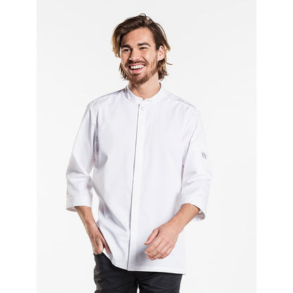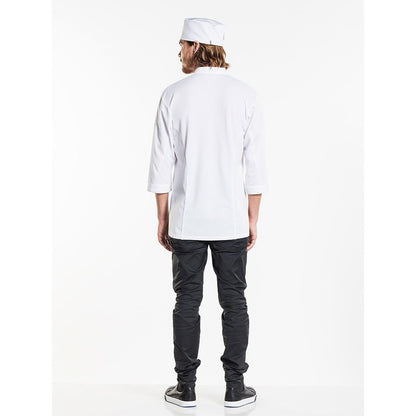 De Chaud Devant 226 Riva UFX White Chef Jacket is een duurzame koksbuis, waarin materiaal van 4 gerecyclede plastic flessen in verwerkt is. De Riva is een verfijnde, ingetogen koksbuis. De verdekte sluiting en halflange mouwen zorgen voor een bescheiden uitstraling. Op de kraag, schouders en mouwen zijn mooie details aangebracht. De bovenste knoop maakt de Riva koksbuis helemaal af. Bijzonder aan deze koksjas zijn de luchtige jersey achterpanden: supercomfortabel! Kijk voor meer duurzame kleding bij de Chaud Devant FX-collectie en RPB-collectie.