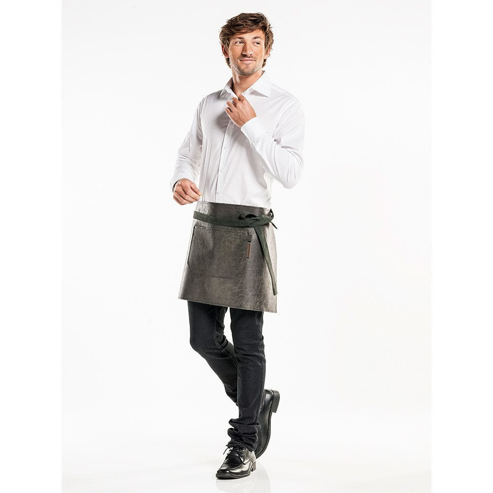 Authentiek, lichtgewicht en tijdloos. Van bistro, foodtruck tot trendy bar, de nieuwe Leather70 collectie voelt zich overal thuis. De innovatieve combinatie rundleer en polyester maakt de leren schorten en sloven licht en minder kwetsbaar voor vlekken. Alle banden zijn op maat te verstellen. De 'raw edge - single stitch' afwerking geeft de collectie de herkenbare, stoere uitstraling. De Leather70 collectie bestaat uit 4 kleuren: Irish Cream, Bourbon Gold, Barrel Brown en Moonshine black. Reinigingsadvies: Dit natuurlijke product kan worden afgenomen met een vochtige doek. Eventueel kan een neutrale zeep als groene zeep worden gebruikt voor het afnemen van het materiaal. De banden kunnen apart worden gereinigd op 30 graden. De baas onder de sloven. Met zijn authentieke look is de Regular h�t allround sloofje. Dit model is uitgevoerd met een handige zak.