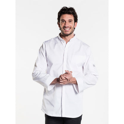 De Chaud Devant Nordic 296 White Chef Jacket heeft een rustige, zuivere look. Met het Scandinavisch design kenmerkt de koksjas zich door functionaliteit en eenvoud. De jas is voorzien van YKK Flex Fix drukknopen onder een blinde sluiting.� In het handige borst- en pennenzak kunt u uw pen en notities kwijt. De kraag is modern en afgewerkt met de stiksels van een bies. U kunt deze sneeuwwitte koksbuis goed combineren met een leuk schort uit de Chaud Devant Nordic collectie.