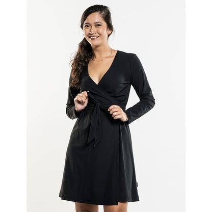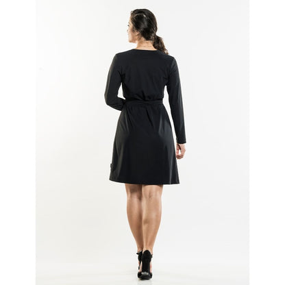 De Chaud Devant Sense Dress Vanilla Black van de Chaud Devant Sense-collectie is een overslagjurkje. Dit heeft als voordeel dat het mooi aansluit op ieder figuur. U kunt deze jurk op verschillende manieren dragen door de banden van deze jurk aan de voorkant of aan de achterkant dicht te knopen. De rok van het jurkje loopt wijder uit, wat zorgt voor een speelse look en bewegingsvrijheid. Door het fraaie silhouet past dit jurkje zowel in een chique als casual ambiance.