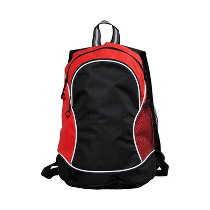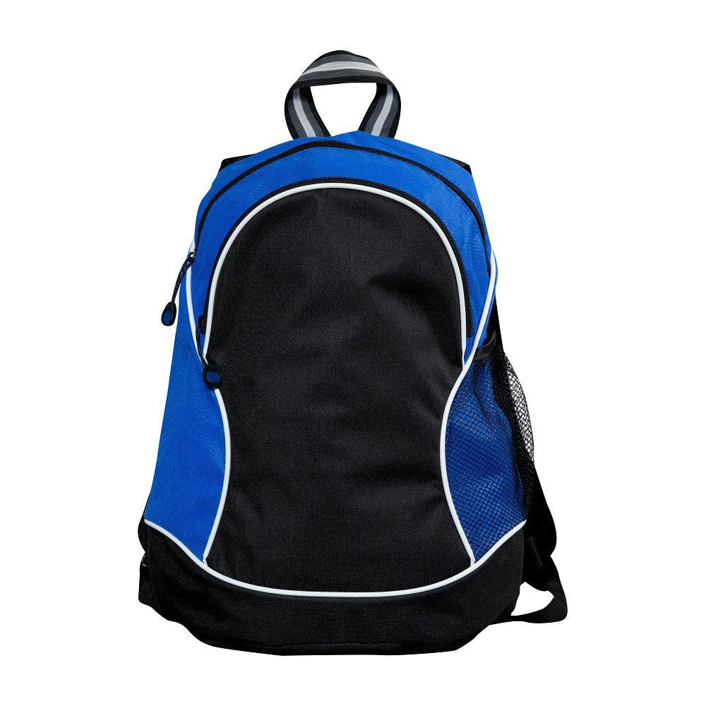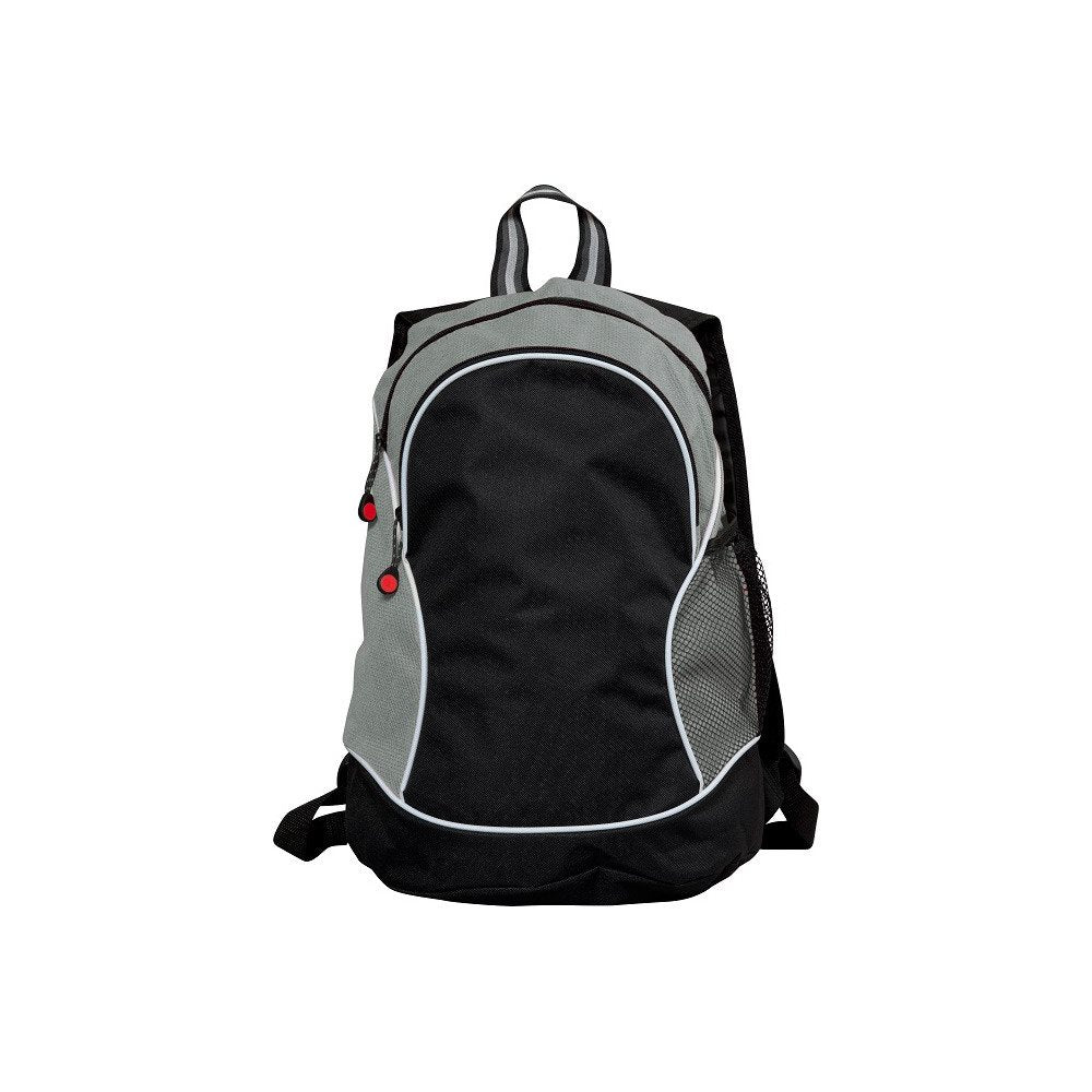 Tweekleurige sportieve rugzak in een non woven materiaal. Verstelbare banden. Zipper pullers geschikt voor logo middels doming sticker.
