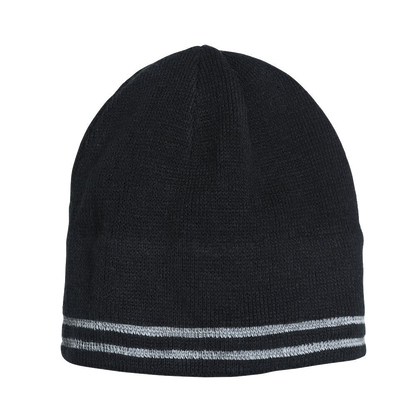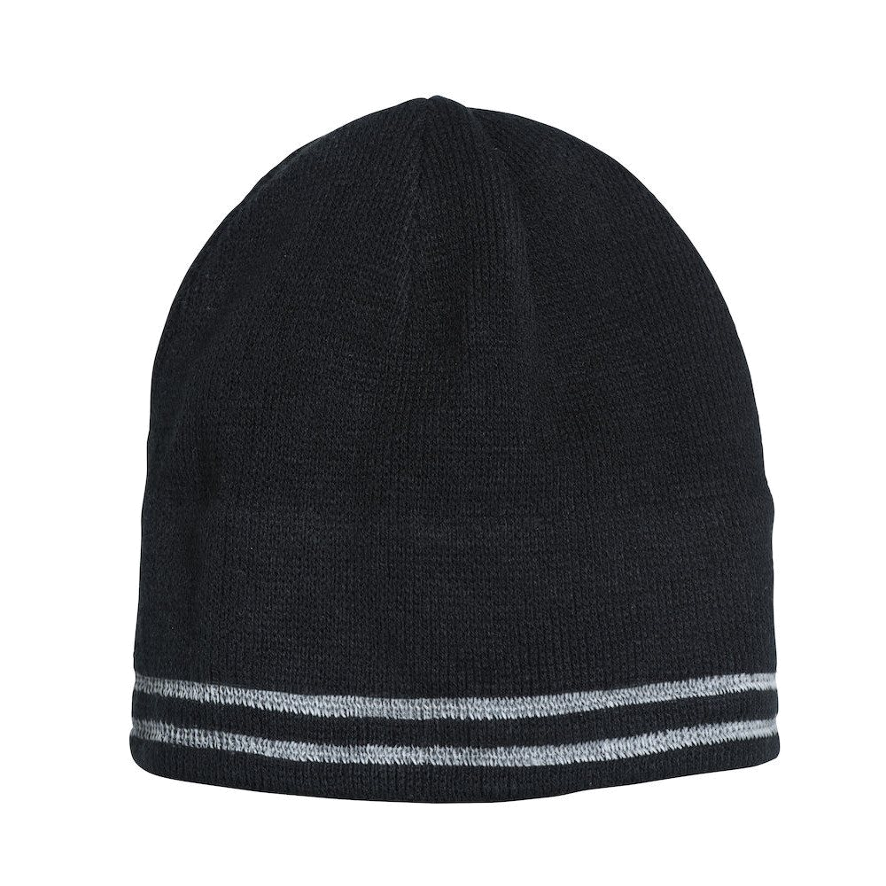Fijn gebreide muts met zes naden. Katoenen voering. Twee reflecterende strepen voor hoge zichtbaarheid. Reflective index: 250.