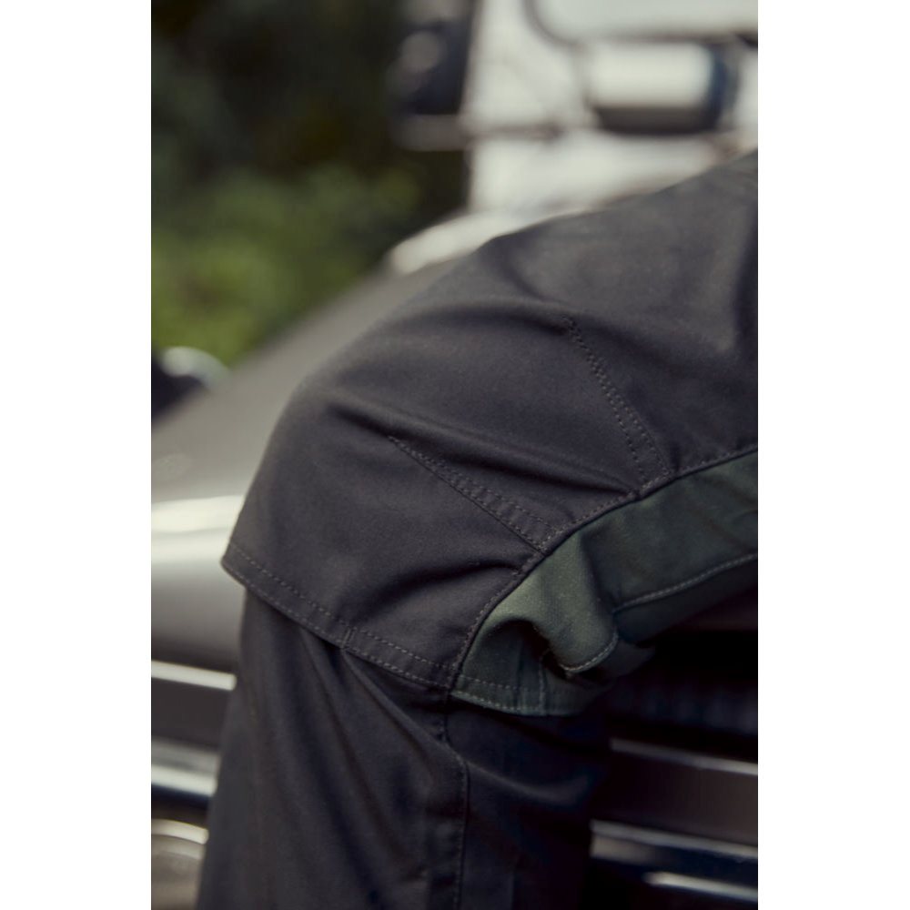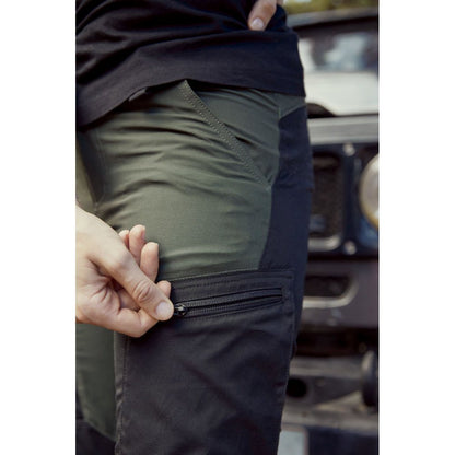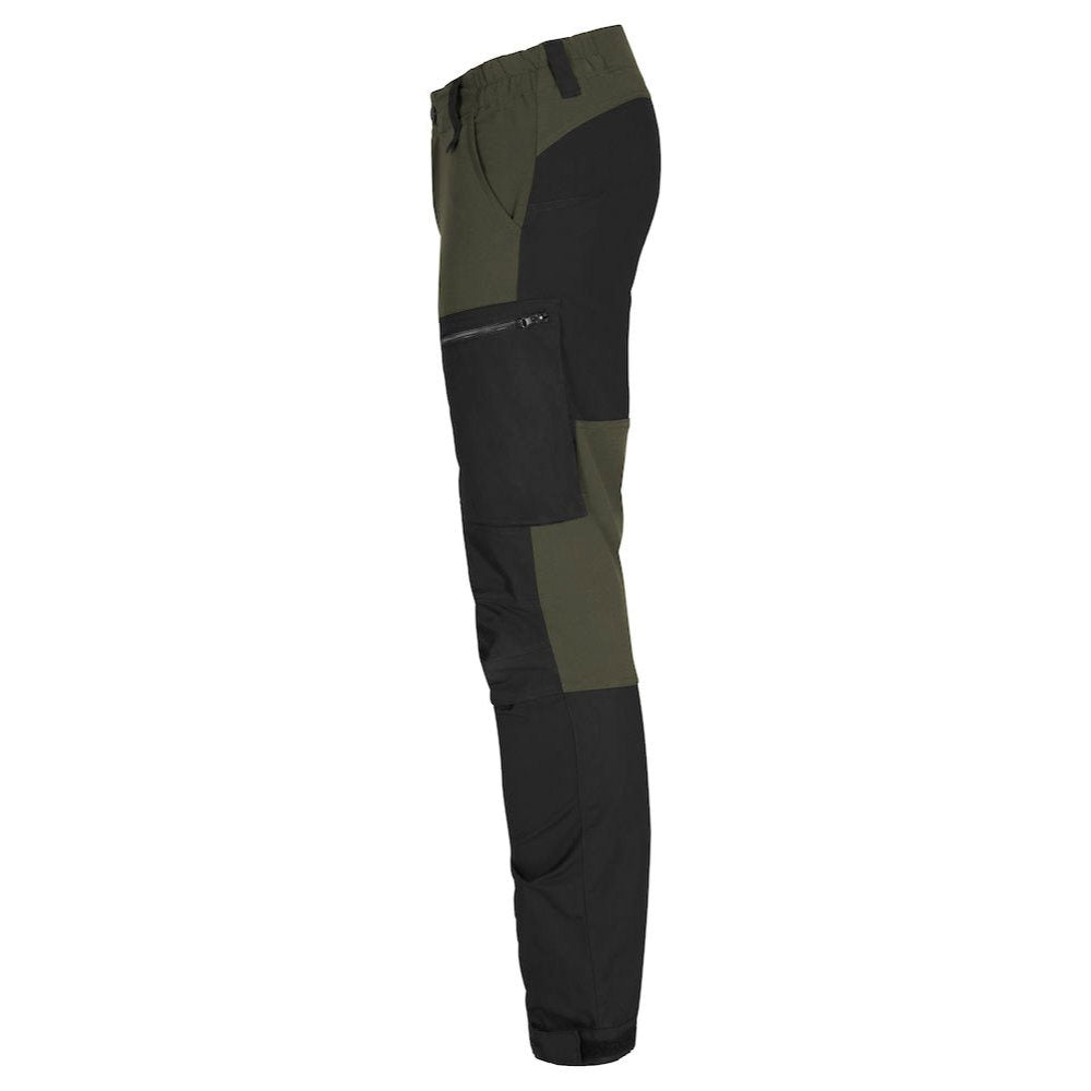 Een moderne trekking broek van een comfortabele en ventilerende 4-way stretch kwaliteit. Met delen van duurzame wind- en waterafstotende stof. Afgewerkt met elastiek in taille en een voorgevormde knie voor verbeterde mobiliteit. Twee voorzakken, twee beenzakken met rits en één achter. De onderzijde van de broekspijp is verstelbaar met elastiek en klittenband. Met ruimte voor het invoegen van kniebeschermers.