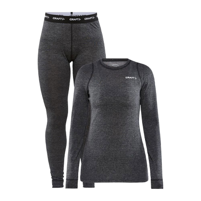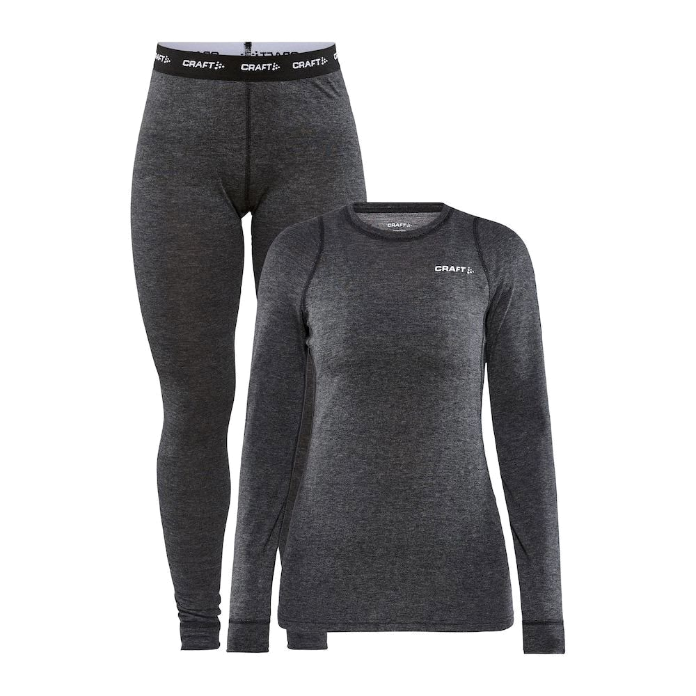Core Wool Merino Set bestaat uit een baselayer-trui met lange mouwen en een onderbroek van een zachte merinowol- en polyestermix die je de hele dag droog en warm houdt.