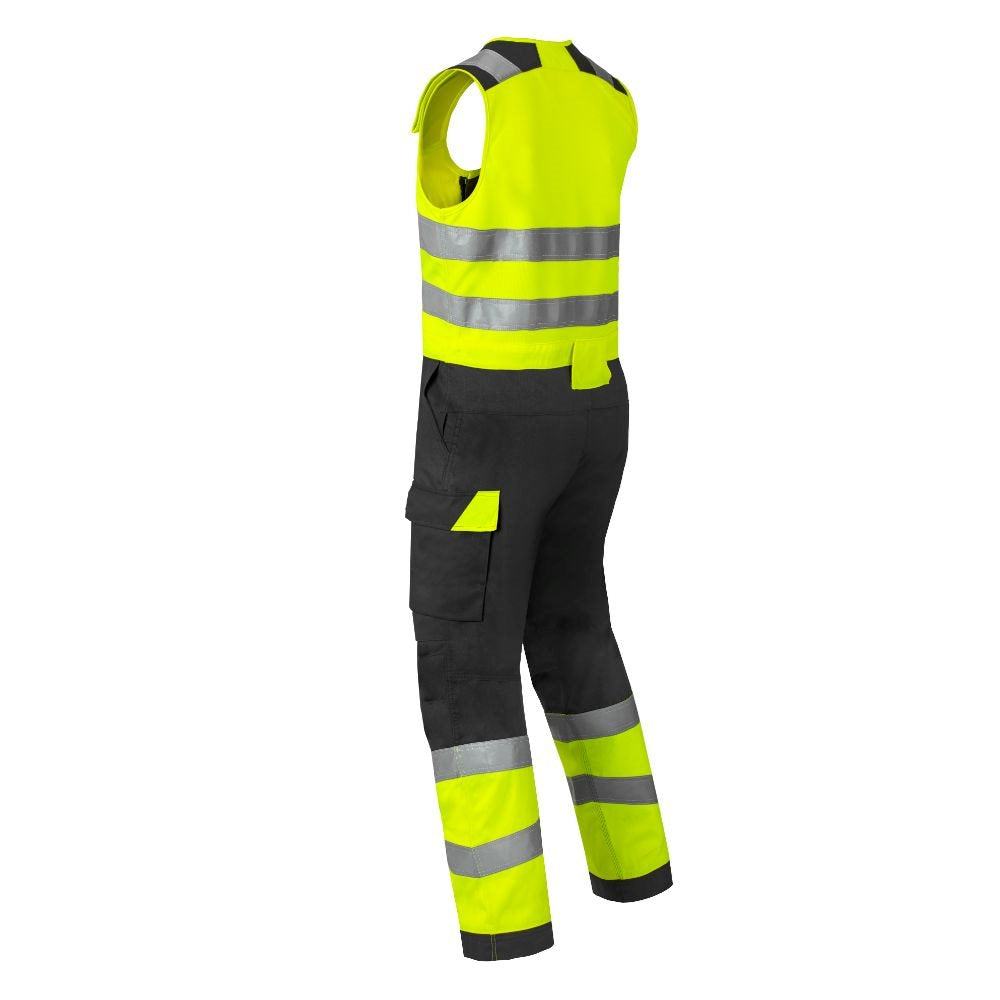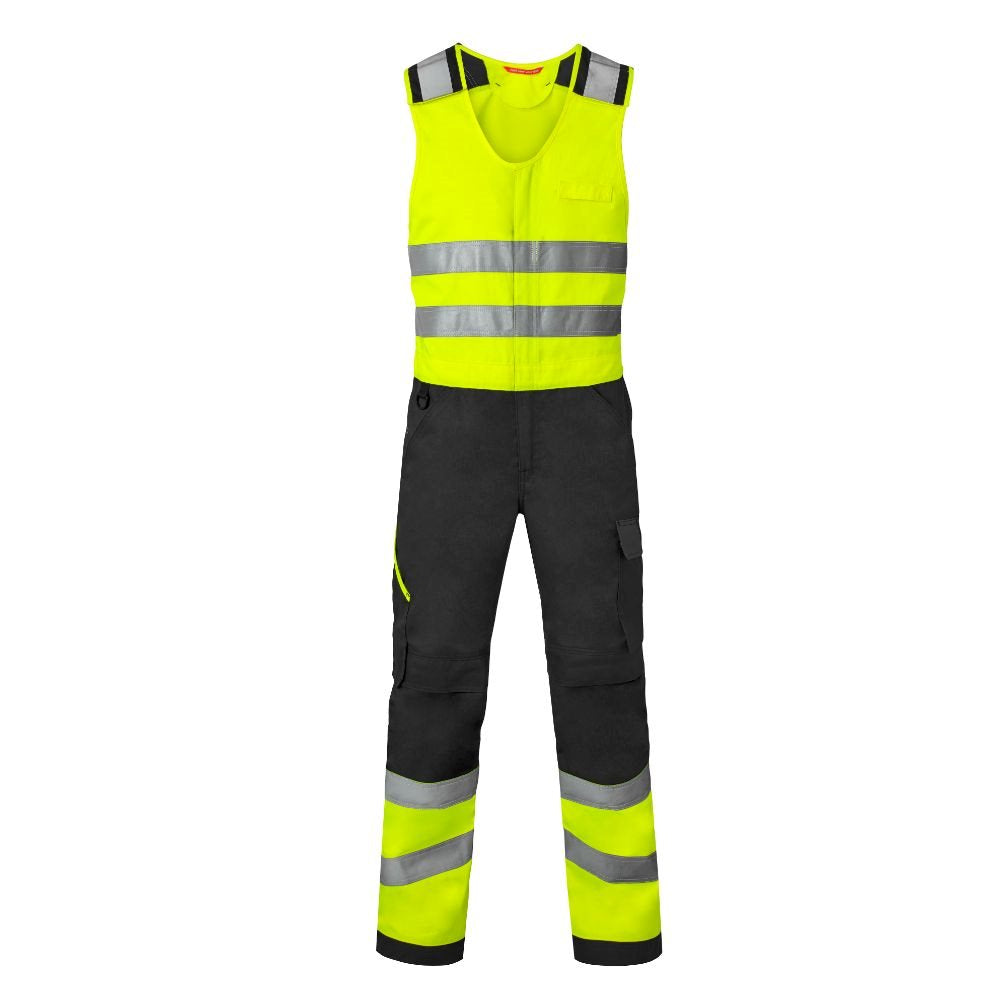Deze High-Vis Bodybroek uit de High Visibility+ collectie van Havep is van alle gemakken voorzien met onder andere 2 ingezette zijzakken, een dijbeenzak, een duimstokzak en de verstelbare schouderbanden. Door de voorgevormde broekspijpen heeft deze bodybroek ook een zeer goede pasvorm. De naden zijn op de kwetsbare plekken drievoudig gestikt, waardoor de bodybroek een extra lange levensduur heeft. De extra inzet bij het kruis is ter voorkoming van uitscheuring.