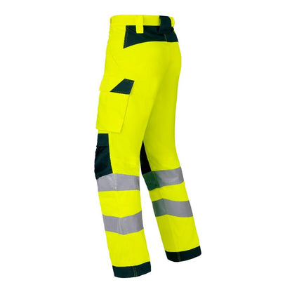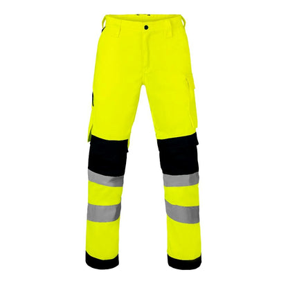 Deze werkbroek uit de High Visibility+ collectie van Havep is voorzien van onder andere makkelijk toegankelijke kniezakken die aflsuitbaar zijn met een klep en klittenband, duimstokzak en dijbeenzak. De werkbroek heeft een extra lange levensduur doordat de kwestbare plekken drievoudig gestikte naden hebben. Ter voorkoming van scheuring is het kruis extra ingezet.