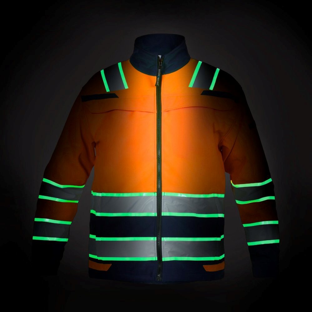 Dit Hydrowear Ingen Softshell Jack 131015 zorgt ervoor dat u extra zichtbaar bent door de speciale glow in the dark technologie. Door de supersnelle oplading via zonlicht of kunstlicht geeft de jas een aantal uren licht. De jas reageert van nature op veranderende lichtniveaus, zodat u altijd beschermd bent. 5 minuten zonlicht geeft 8 uur licht; er zijn geen batterijen nodig.