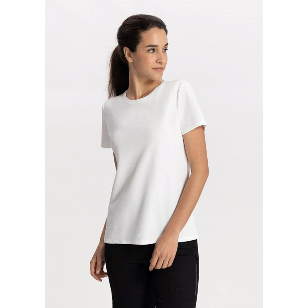 Dankzij het antibacteriële, ademende en verkoelende effect is dit Lemon&Soda Cooldry T-shirt voor dames een goed basis kledingstuk voor elke bedrijfsoutfit. Door de unieke samenstelling van een katoenen binnenzijde en polyester Cooldry buitenzijde absorbeert het T-shirt transpiratie snel en zorgt de Cooldry stof dat het shirt snel droogt. Verkrijgbaar in 5 basis kleuren, schoudernaden 2 cm naar voor verlegd.