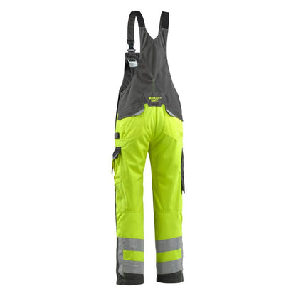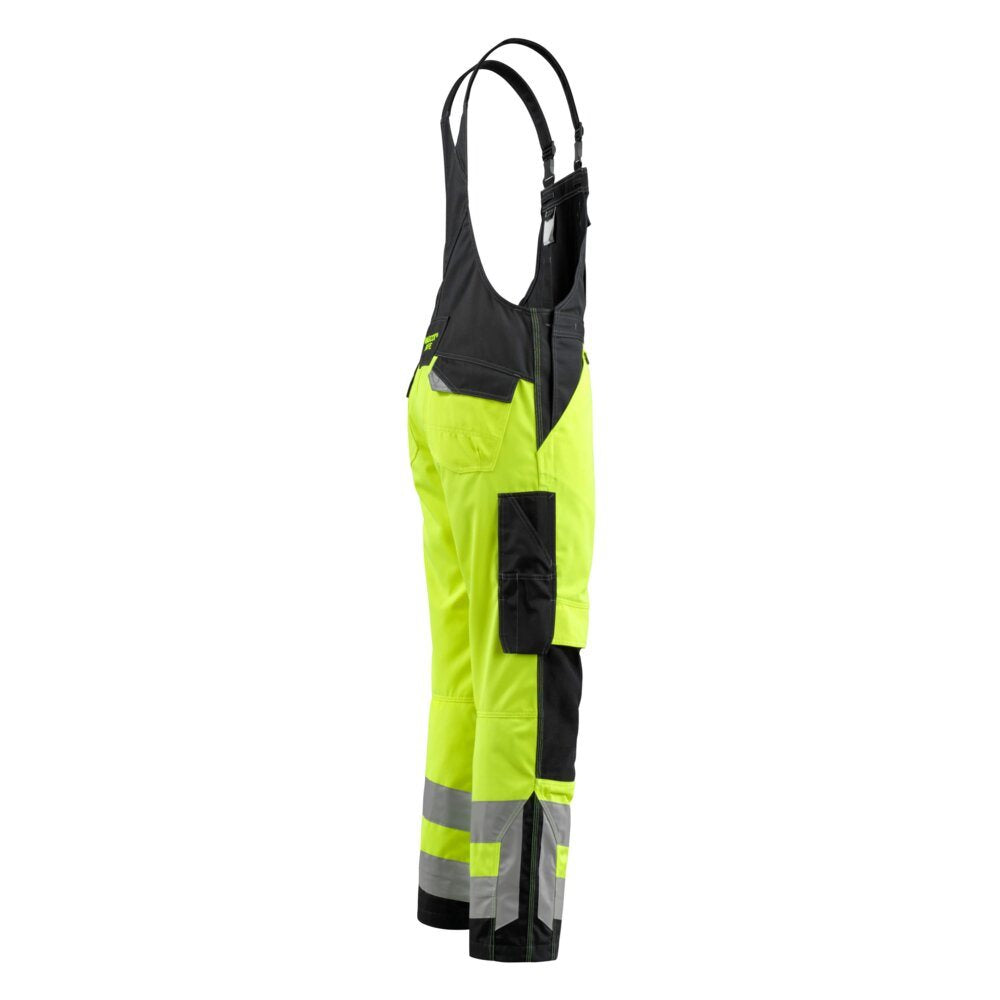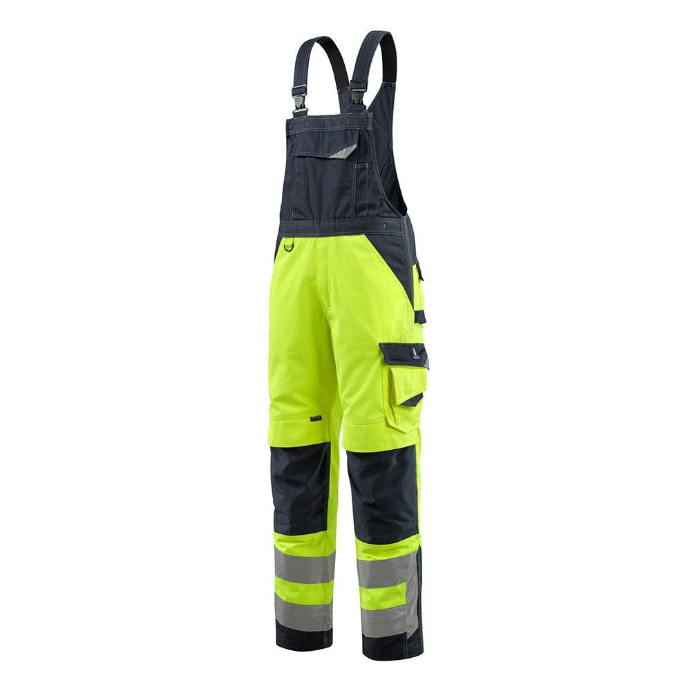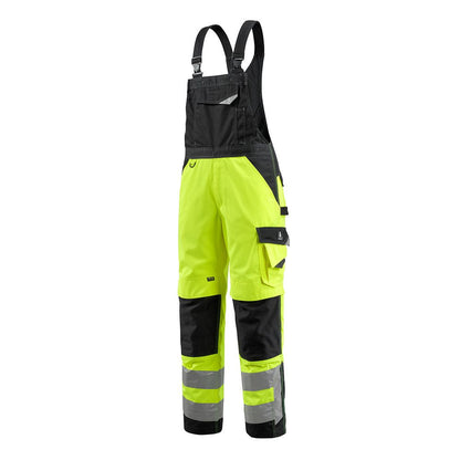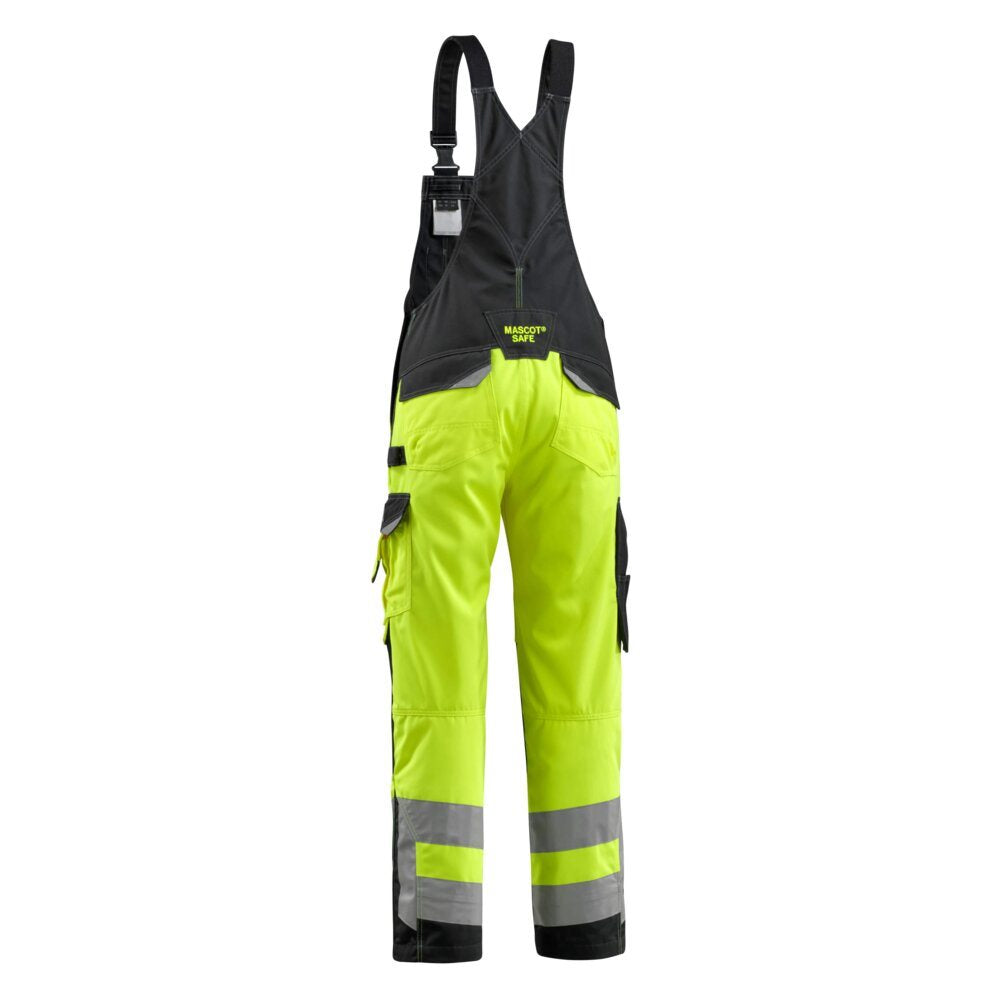 De Mascot Safe Supreme Newcastle Bib is een high-vis Amerikaanse overall met kniezakken. De bib is behandeld met Teflon� wat het materiaal vuilafstotend maakt en daardoor de zichtbaarheid verhoogd. Als u de overall in de wasdroger droogt, wordt de Teflon� behandeling gereactiveerd. De slijtvaste, drievoudig gestikte naden op de pijpen en in het kruis zorgen voor een extra lange levensduur. De Bib heeft een goede pasvorm met ergonomisch gevormde broekspijpen, verstelbare schouderbanden en verstelbare tailleband. Ook de lengte van de broekspijp kunt u verlengen met 3 cm door de rode stiksels onder aan de binnenkant te verwijderen. Let op: dit artikel bevat magnetisch materiaal en is daardoor niet geschikt voor dragers van een pacemaker/ICD en magneetgevoelige apparatuur in de omgeving.