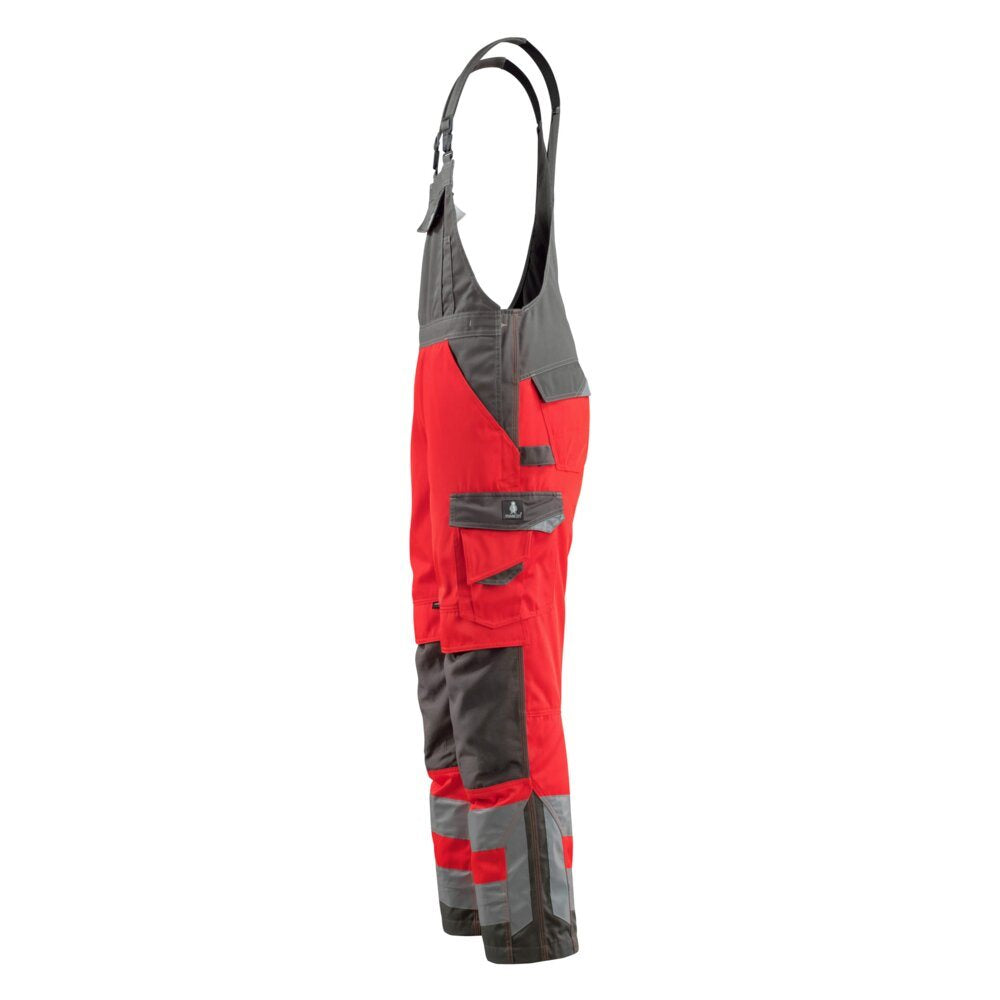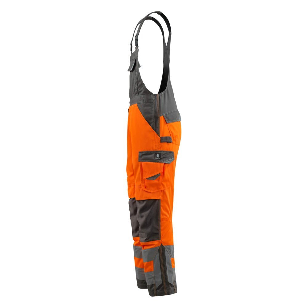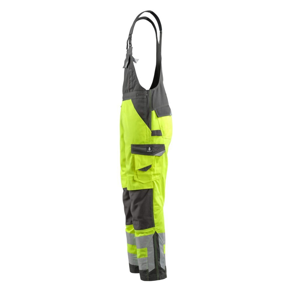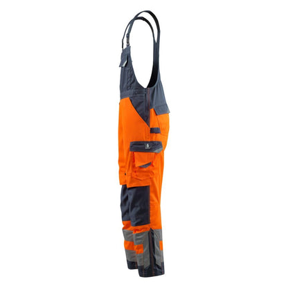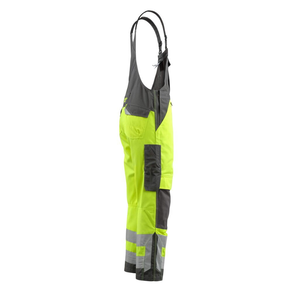 De Mascot Safe Supreme Newcastle Bib is een high-vis Amerikaanse overall met kniezakken. De bib is behandeld met Teflon� wat het materiaal vuilafstotend maakt en daardoor de zichtbaarheid verhoogd. Als u de overall in de wasdroger droogt, wordt de Teflon� behandeling gereactiveerd. De slijtvaste, drievoudig gestikte naden op de pijpen en in het kruis zorgen voor een extra lange levensduur. De Bib heeft een goede pasvorm met ergonomisch gevormde broekspijpen, verstelbare schouderbanden en verstelbare tailleband. Ook de lengte van de broekspijp kunt u verlengen met 3 cm door de rode stiksels onder aan de binnenkant te verwijderen. Let op: dit artikel bevat magnetisch materiaal en is daardoor niet geschikt voor dragers van een pacemaker/ICD en magneetgevoelige apparatuur in de omgeving.