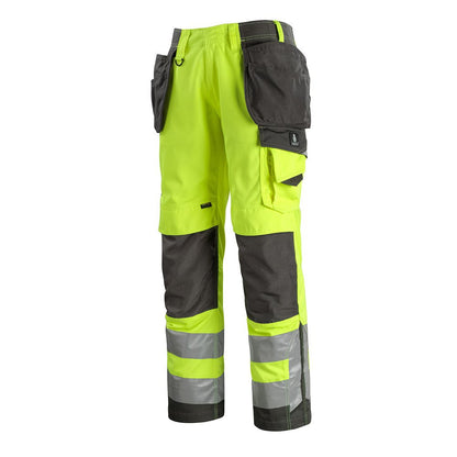 De Mascot Werkbroek Safe Supreme Wigan is een high vis werkbroek met spijkerzaqkken. De broek heeft een hoge slijtvastheid en is vuilafstotend door de Teflon� behandeling, welke wordt gereactiveerd als u de broek volgens de voorschriften in de wasdroger droogt. De broek heeft slijtvaste, drievoudig gestikte naden op de pijpen en in het kruis voor een extra lange levensduur. De kniezakken zijn voorzien van slijtvast CORDURA met opening aan de bovenzijde, welke wordt afgesloten met een klep met klittenband. U kunt de broek eenvoudig verlengen met 3 cm door de rode stiksels onder aan de binnenkant te verwijderen. Door het fluorescerend materiaal met reflectiebanden bent u beter zichtbaar tijdens uw werk. Bij de Safe Supreme collectie vindt u bijpassende kleding voor extra bescherming.