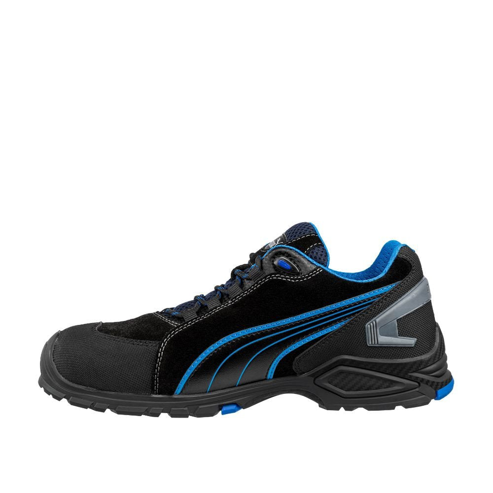 Hoeven veiligheidsschoenen er eigenlijk wel uit te zien als veiligheidsschoenen? Absoluut niet! De RIO BLACK LOW uit de PUMA SAFETY METRO PROTECT productlijn weet op slimme wijze lifestyle te combineren met strenge veiligheidseisen. Deze schoen past perfect in de moderne werkomgeving. De unieke loopzool, volledig gemaakt van TPU, vertoont kenmerken die lijken op die van hoogwaardige voetbalschoenen - een bijzonder platte zool, buitengewone duurzaamheid, optimale grip en maximale flexibiliteit. De kruipneus beschermt het leer bij de tenen tegen slijtage, vooral tijdens werkzaamheden op de knieën. De geïntegreerde IdCELL in de hak absorbeert schokken direct bij het neerkomen van de hak en verlicht je gewrichten en banden. Het evercushion� PRO voetbed zorgt ook voor optimale demping en daarmee langdurig draagcomfort.