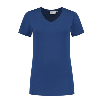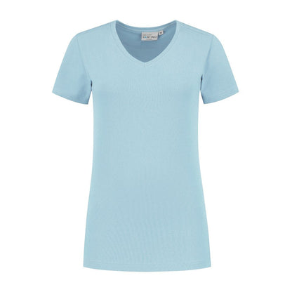 Deze single jersey Santino Lebec shirt voor dames is gemaakt van 50% katoen en 50% polyester. De ladies fit pasvorm zorgt voor een sportieve look. Mede door de V-hals en kortemouwen is het een luchtig shirt. De extra antibacteriële afwerking is een toegevoegde waarde.