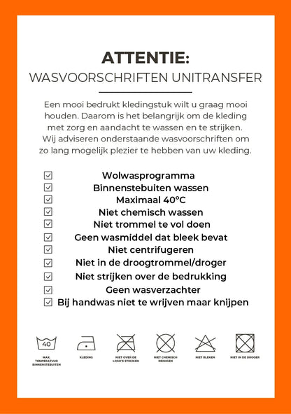 Dit artikel is slechts de tekst bedrukking of borduring, u dient ook de te personaliseren kleding toe te voegen aan de winkelwagen.