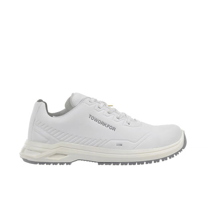 De ToWorkFor X-Com X-302 is een comfortabele ESD werkschoen met een sportief uiterlijk. De schoen heeft een Antibacteriële Microvezel bovenzijde en een Double Density PU zool. De Antibacteriële Microvezel bovenzijde is een innovatief materiaal gemaakt van polyester vezels wat waterbestendig, zeer duurzaam en ademend is. De Double Density PU zool combineert twee verschillende PU dichtheden, waarbij de tussenzool extreem zacht en comfortabel is, terwijl de harde PU-buitenzool veel grip biedt en bestand is tegen olie en slijtage. De schoen is ontworpen voor in de dienstverlening, horeca en schoonmaak branche.