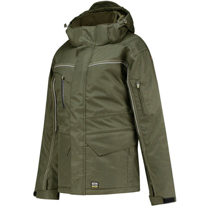 Deze lichtgewicht parka's van Tricorp zijn volledig gewatteerd, zijn wind- en waterdicht en ademend conform EN343 klasse 3:3. Ze hebben getapte naden en een afritsbare capuchon. Voor extra zichtbaarheid is er een reflecterende piping.