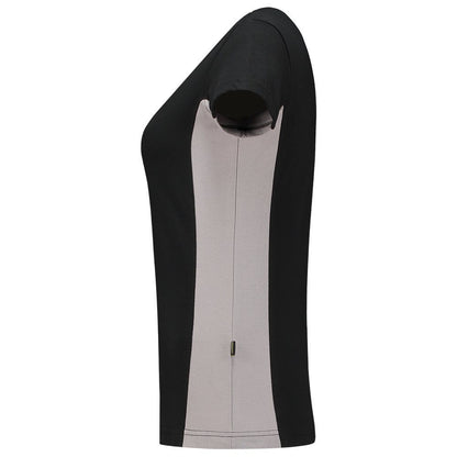 Klassiek tweekleurig Tricorp Dames T-shirt uit de Workwear-lijn gemaakt van 100% gekamd katoen. De kraag is afgewerkt met een kwalitatieve 4-laags ribboord, deze zorgt voor een mooie aansluiting. Het shirt wordt geleverd in een bicolor uitvoering met keuze uit 5 combinaties.